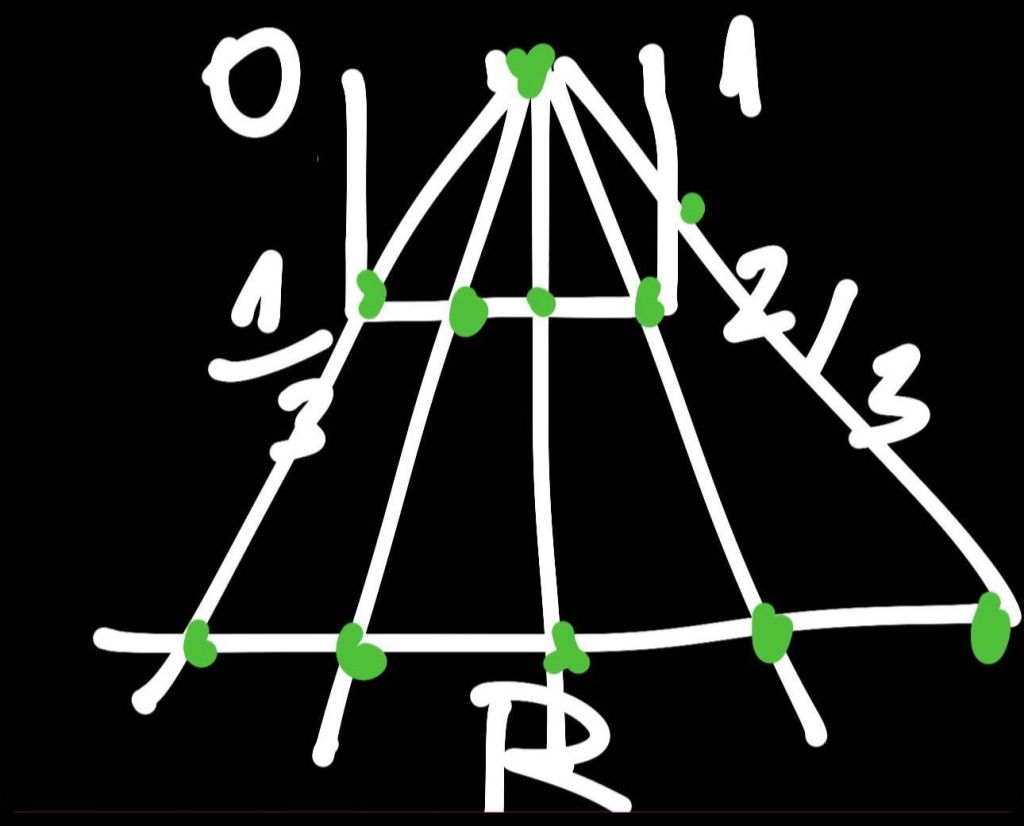 Finalmente establecemos la correspondencia con el contínuo de los números reales R de la siguiente manera: