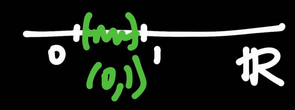 Esto es sumamente sorprendente por poco que lo pensemos, pues muestra que el cardinal de todo el continuo R es igual al de una parte suya, a saber, el de (0,1).