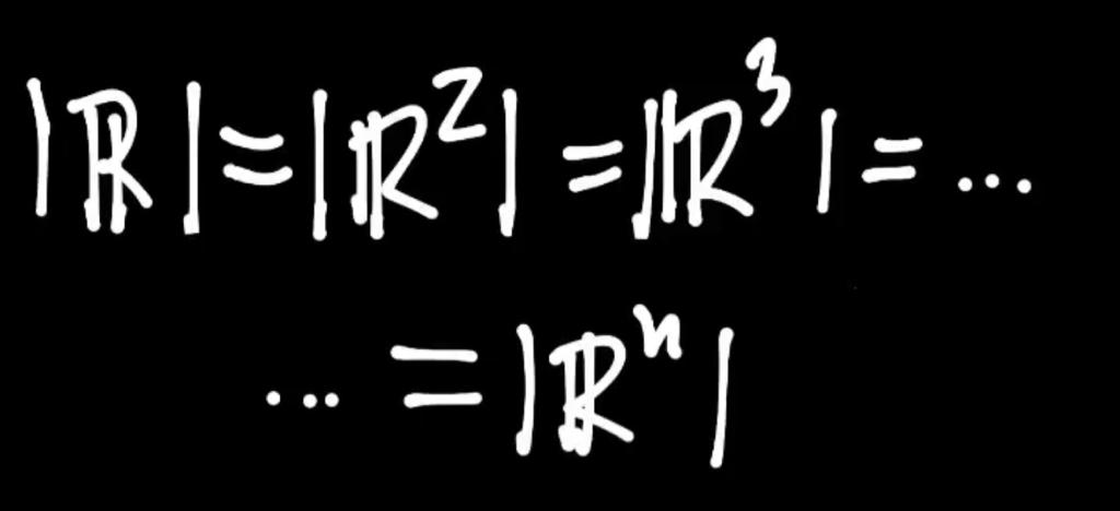 Vamos que el infinito del continuo R -o del intervalo (0,1)– es igual que el del plano R², el del espacio de tres dimensiones R³ o ¡el de un espacio de n dimensiones Rⁿ !