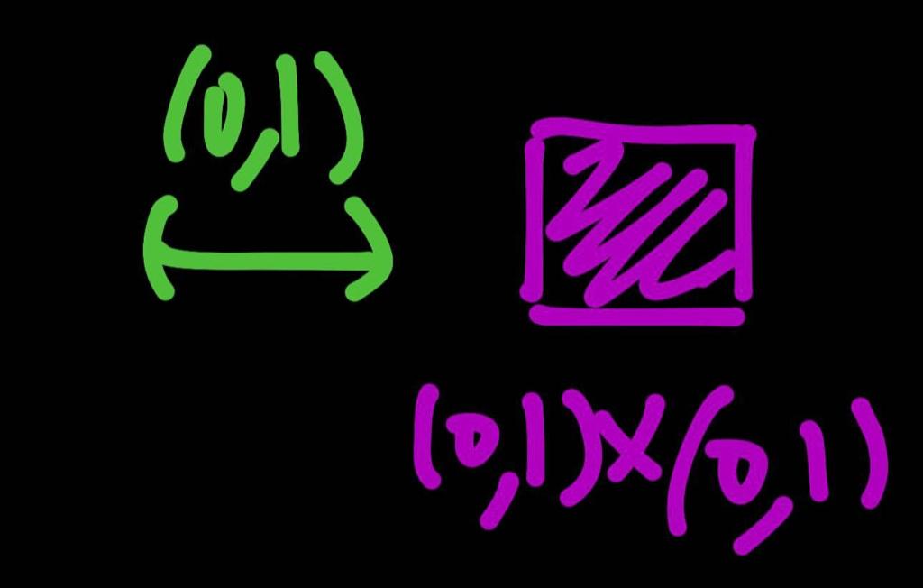 Ahora bien, igual que se puede establecer una correspondencia de uno a uno entre el continuo R y el intervalo (0,1), también puede establecerse una correspondencia de uno a uno entre el plano R² y el cuadrado (0,1)x(0,1).